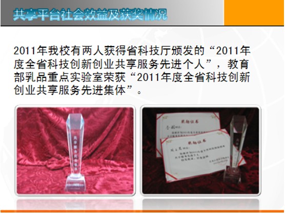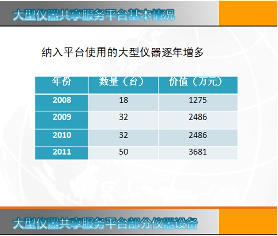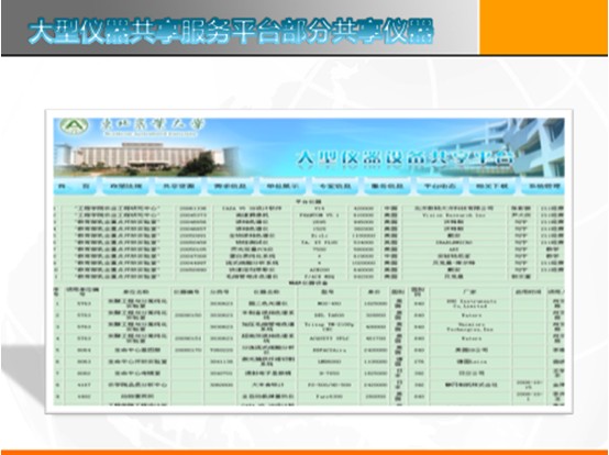 大型仪器设备共享平台是“十一五”规划,东北农业大学“211工程”三期建设新项目之一,是在我校仪器设备开放共享平台的基础上,进一步实现校内大型仪器设备资源共享和科技资源面向社会开放,并进一步分享“九五”、“十五”建设成果的项目。其建设目标是完善学校分析技术平台、生物技术平台、信息技术平台等的构建,做强仪器设备共享平台开放基金,扩大仪器设备共享范围。建成一个服务于社会与国际接轨,具有性能优良,功能齐全,安全可靠,充分展示利用我校仪器设备的服务架构,为学校高素质创新型人才培养、高水平科学研究和学术交流提供重要支撑。