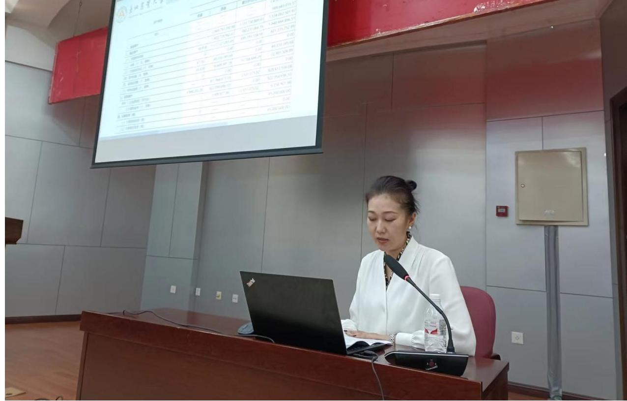 公用房管理科科员于泓洋针对学校公用房管理工作,从学校公用房分类、管理、制度等方面进行解读和说明,对公用房出租流程进行详细讲解。