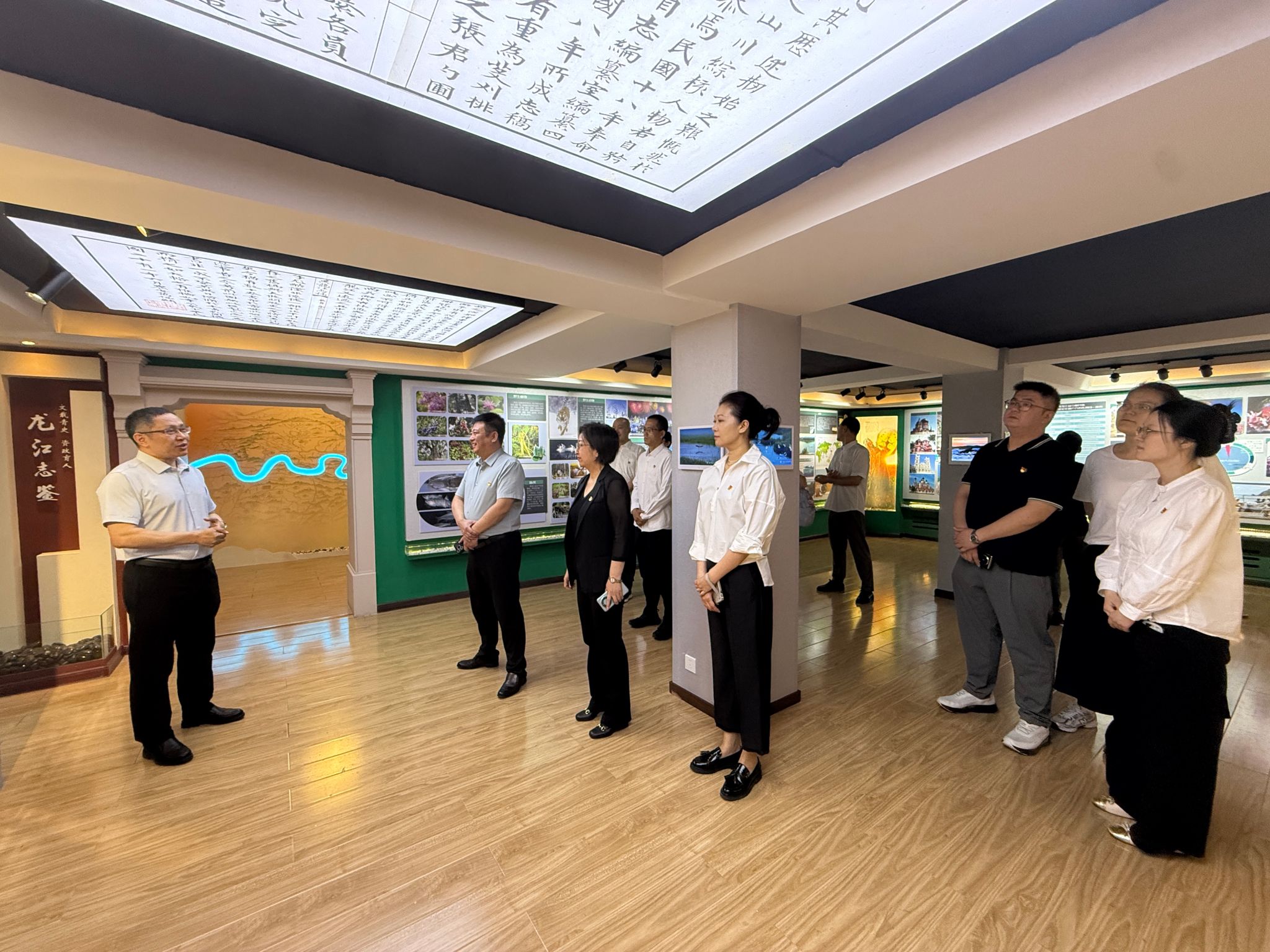 在中共黑龙江省委史志研究室省情信息处处长房波的引领讲解下,支部党员参观了黑龙江省方志馆和东北抗联展厅,包括珍贵的黑龙江地方党史文献、图片及实物展览。翔实的史料生动再现了中国共产党领导黑龙江人民在革命、建设和改革各个历史时期的伟大奋斗历程与辉煌成就,让大家深刻感受到龙江大地上蕴含的深厚红色底蕴和一代代共产党人矢志不渝的理想信念与奉献精神。