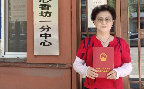6月7日下午,香坊区农校街19号西区4号住宅3单元201室的我校职工马艳,在中山路17号哈尔滨市不动产登记中心香坊一分中心办理相关手续,成功领取了心心念念、企盼已久的房屋不动产权证书。马艳老师激动地说:“盼望了二十年的房产证,今天终于办下来了,真心感谢学校为职工福祉而付出的努力。”