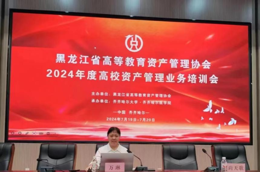 为提升黑龙江省高等教育国有资产管理工作水平和质量,推动黑龙江省高等教育资产管理工作高质量发展,7月19日至21日,由黑龙江省高等教育资产管理协会(以下简称“协会”)主办、齐齐哈尔大学和齐齐哈尔医学院共同承办的2024年度黑龙江省高等教育资产管理协会业务培训会在齐齐哈尔大学中校区日新大厦召开。齐齐哈尔大学副校长丛喜权、齐齐哈尔医学院副院长于海涛等出席开班仪式并致辞。来自哈尔滨工程大学、东北林业大学、黑龙江大学等40余所高等院校会员共计134人参加了业务培训会。协会会长、我校国有资产管理处处长王爽出席开班仪式并讲话。协会副会长、东北林业大学国有资产管理处处长邹本存主持开班仪式。